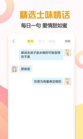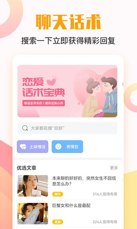 1、恋爱表情包,恋爱秘诀,装逼截图,情话加油站,恋爱话术大全app为你的幸福助力。