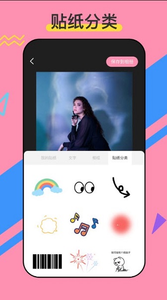 2、软件中的贴纸都是非常的齐全丰富的,各种不同风格的贴纸都是应有尽有的。