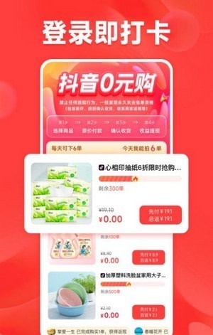 1、打卡赚钱:用户每天登录打卡即可获得赚取积分的机会,让购物时享受更多折扣,零门槛赚钱。