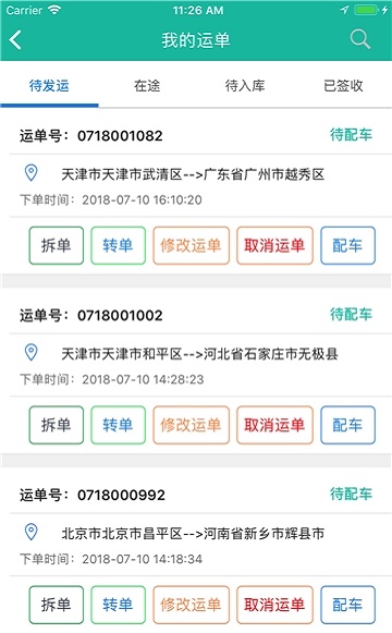 3、对于每一个订单,您都可以了解收货人的情况,了解更多的送货地址,可以让司机更好的运输货物。