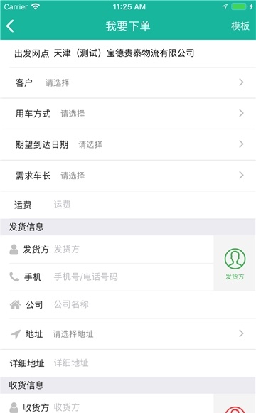3、对于新运单,在填写运单时,可以使用更多的模板,使填写订单的步骤更加详细。