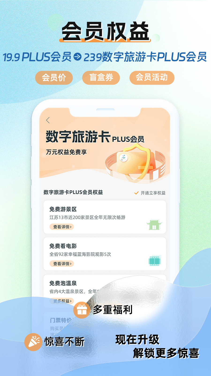 “水云江苏”数字旅游卡是全国领先的文化旅游一卡通产品。一卡包含13个地级市160+知名景区,其中5A、4A景区占比近60%。全年可免费、无限次体验,包含电影、演出、温泉、展览、游船等泛文化娱乐权益,所有景区门票及权益总价超万元,助力江苏实现文化旅游与全国全省同等待遇,荣获文化和旅游部2022年文化和旅游数字化创新实践优秀案例等荣誉。