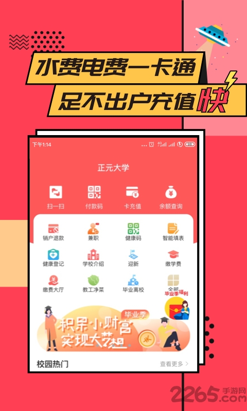 ·实现在线缴党费、缴学费、电费、补办校园卡、补办学生证等各种缴费项目