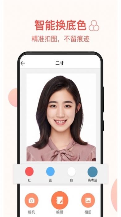 3、只需一键,就可以告别丑陋的证件照,还可以快速更换背景颜色,一键操作,方便简单。