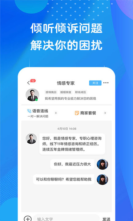 1、专业的心理服务:此软件主打心理情感方面的倾诉功能,为大众提供专业的咨询服务,为广大用户提供一个良好的心理环境。