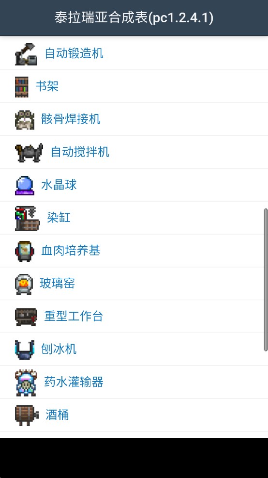 1、泰拉 瑞亚合成表mod手游包含PC版和手游的完整物品内容。