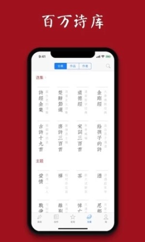 1、【诗库】五千年文化,百万库,按朝代、作者、作品分类检索,涵盖注释、翻译、鉴赏。