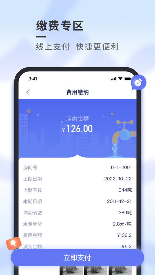1、支持在线支付。用户不再需要排长队付款。不仅方便快捷,还能避免漏付,保证生活质量;