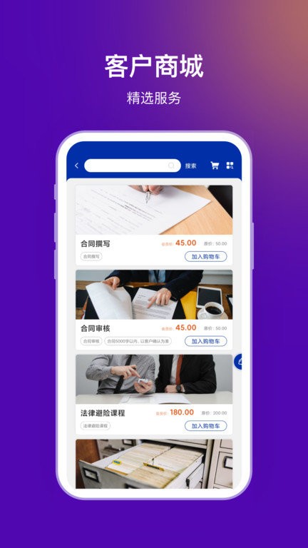 3、精选服务推荐:为用户提供精选法律服务推荐,根据用户需求和过往使用记录进行智能匹配,轻松找到最合适的法律解决方案。