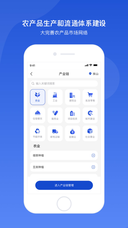 以产业为单元,以企业为着力点,对上下游供应商渠道资源物流仓储进行多维度整合;从供应链出发,推进产业价值链升级重塑,助力企业构建新的交互联合模式,促进企业价值活动增长;优化产业资源分配,激发产业活力和创新力,助力保山传统产业升级和 新兴产业集聚。为本地政府和社区居民提供数字供应链服务,打通外循环,为区域供给侧数字化改革,乡村振兴提供强有力的保障服务。
