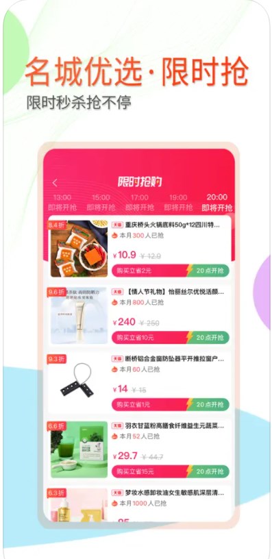 1、丰富的购物活动,每天都有优质商品供应,价格实惠,质量有保障,让用户购买到精美商品。