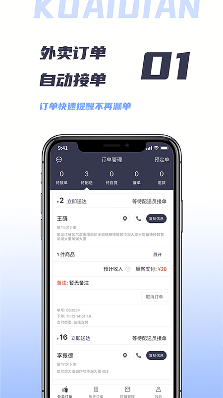有效的满足商家的一些数据管理和订单管理的需求,营业起来更加方便。