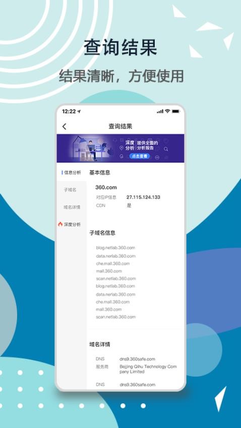输入IP地址或域名后,点击搜索按钮即可检索相关信息;