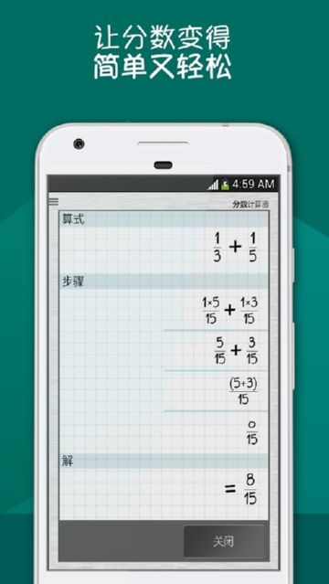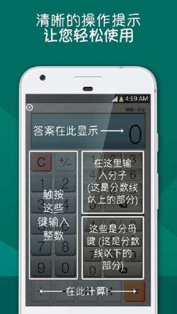 分数计算器作为一款手机计算器软件,界面简洁清爽,功能非常强大。该软件可以帮助用户在手机上快速计算分数之间的加减乘除。它可以帮助您轻松解决分数的计算问题,并且软件的使用方法非常简单。您可以通过输入您想要计算的分数来直接计算结果。