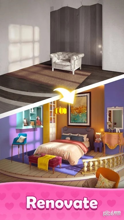 3.简单有趣:玩法简单有趣,在游戏里玩家只需通过点击或拖动来合并家具,轻松上手。
