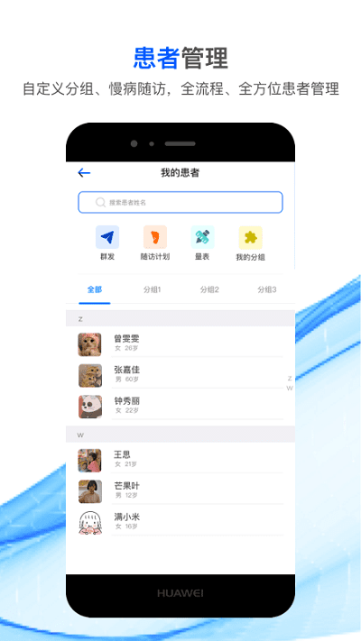2、可以帮助用户完成在线患者信息档案的在线管理,并为用户定制分组和慢病随访。