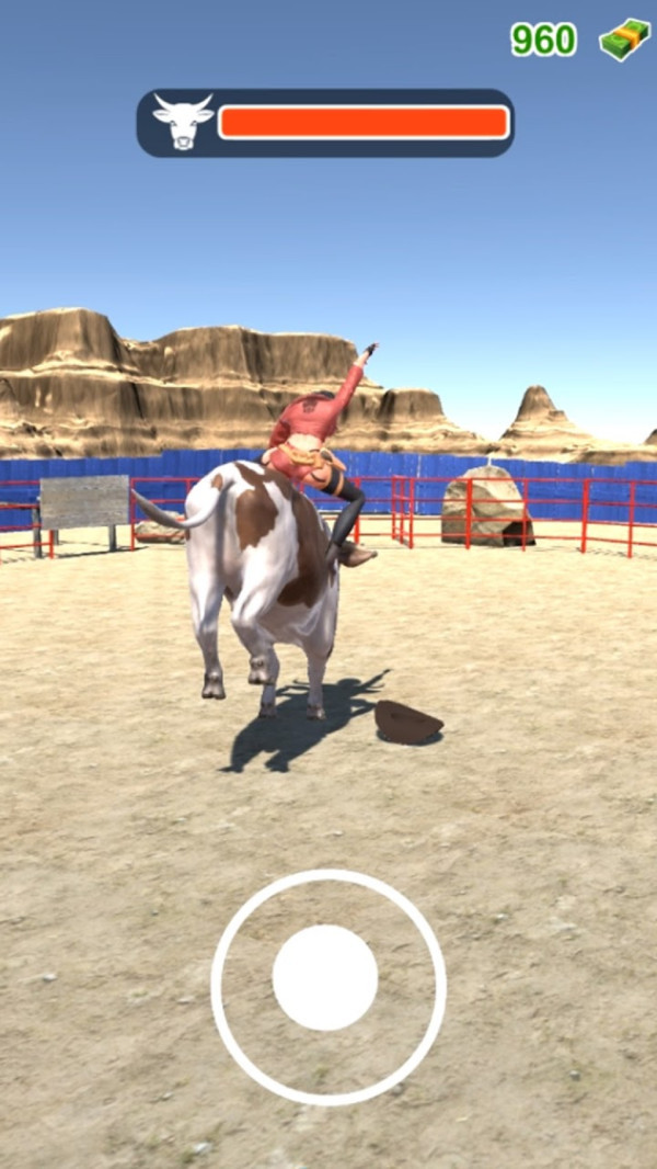 1、在游戏里面,你想要控制你的角色不要从牛背上摔下来,你坚持得越久,得到的回报就越多。