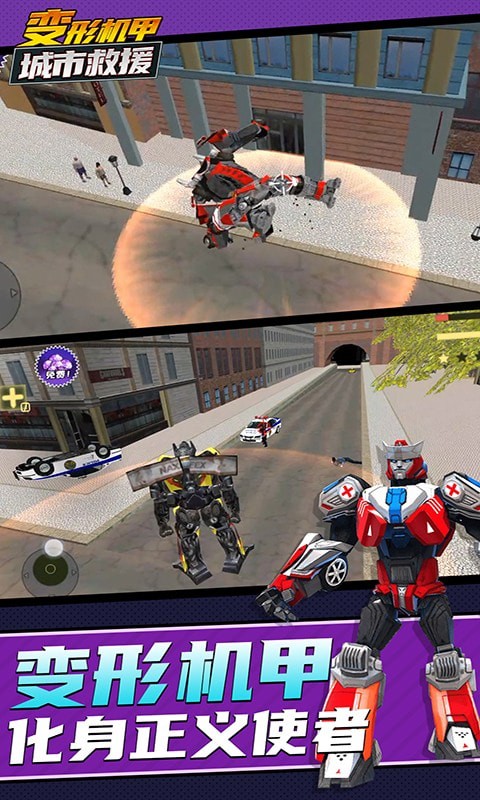 2、变形机甲城市救援游戏中高度自由化的操作,让您可以尽快上手,各种救援任务需要尽快完成。
