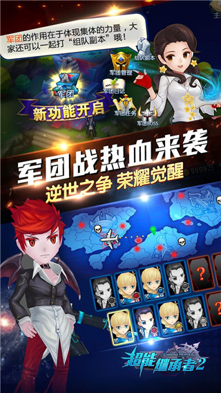 1、多样化的角色招募系统:各色各样的角色可以招募,每个角色都有独特的超能力和技能。在游戏里玩家可以根据自己的喜好和战略选择合适的角色组合,打造属于自己的最强团队。