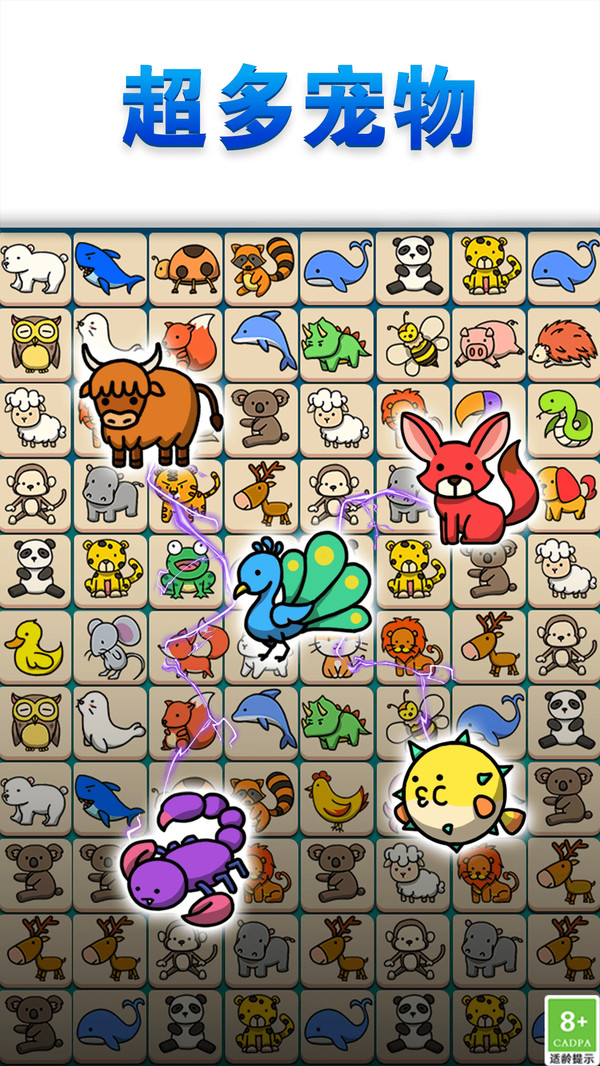 通过消除,宠物可以获得经验并升级,提高其能力;