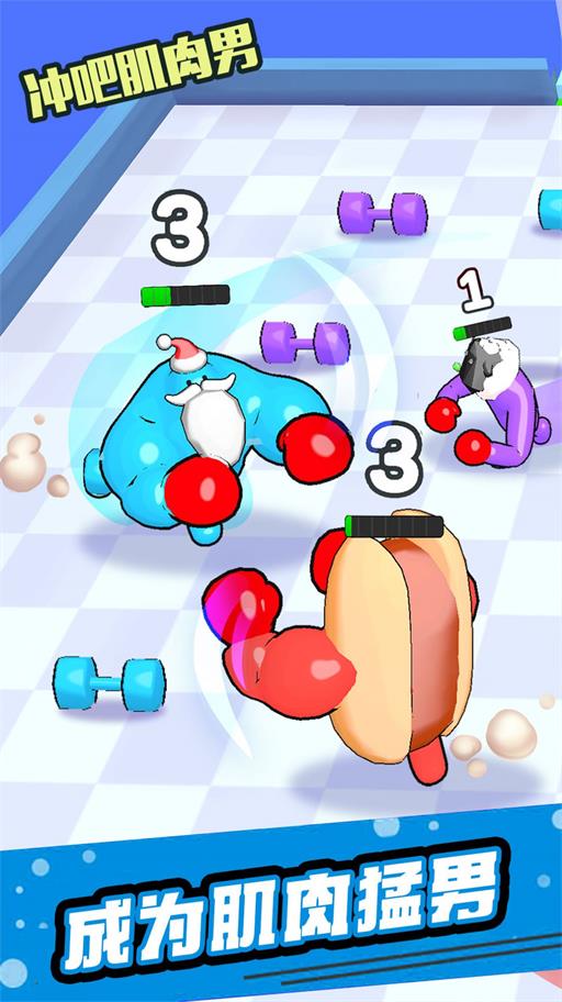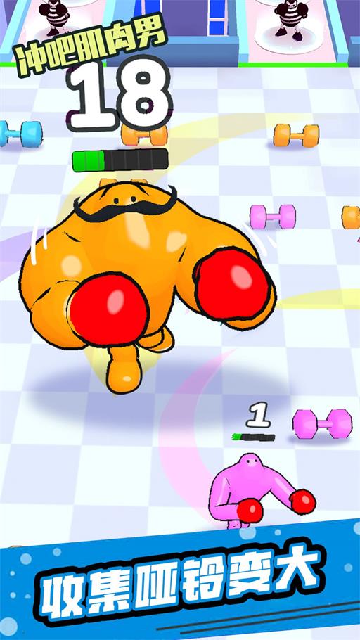 冲吧肌肉男是一款运动竞技类游戏,玩家能够体验刺激的运动挑战和身体素质的提升,开始在竞技场奔跑,并收集颜色相同的小哑铃。这些哑铃的收集不仅能够增强肌肉男的力量,还能够帮助玩家击倒所有守卫,成功抵达决斗场并赢得胜利。