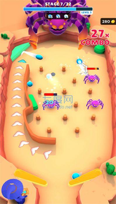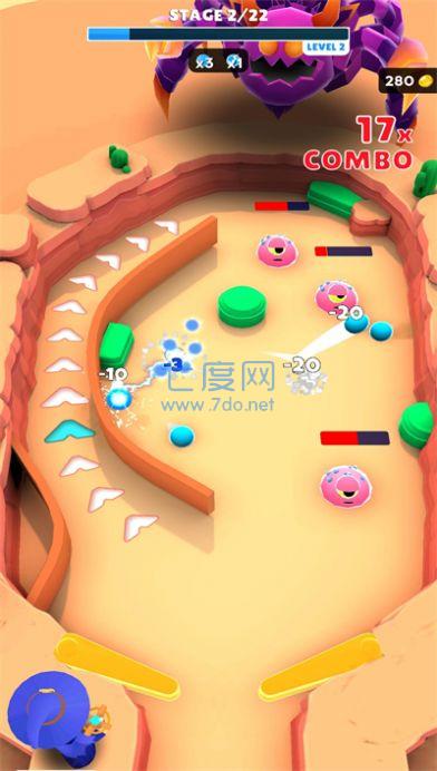 在有限的空间内操纵运动员发射弹球,瞄准并消灭场景中的怪物;