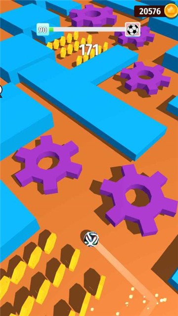 会跑酷的足球是一款冒险闯关类的手游,清新自然的游戏风格以及画面,玩家仅需控制好小球不要受到障碍物的侵扰,不断向前进即可,收集更多的金币资源,为你的小球定制更多属性。