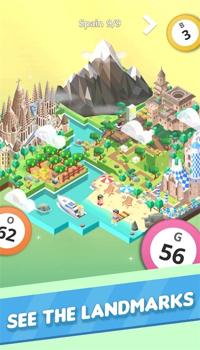 3、收集每个城市的宾果号码。当您收集足够的数量时,您将不断解锁新的城市和景点。