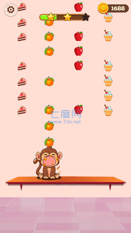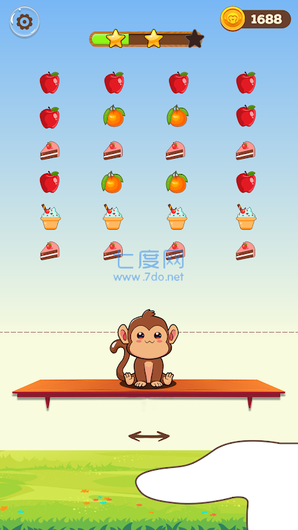 通过左右滑动屏幕控制猴子的移动,让它吃到尽量多的水果;