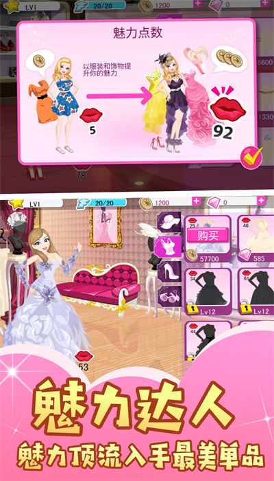3、积累积分解锁高级时装,挑战高分榜单,不断提升在时尚界的地位。