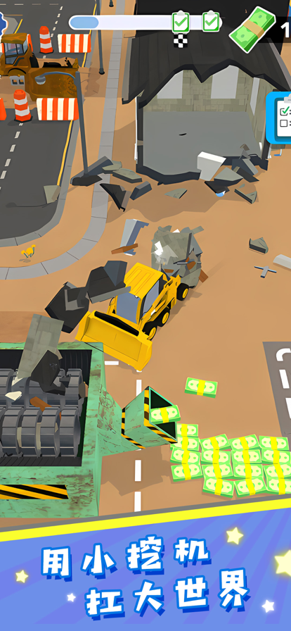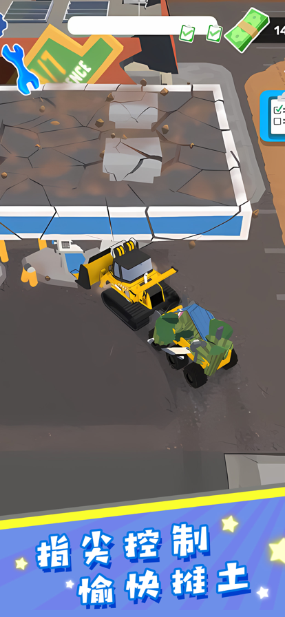 拆出一片天作为一款卡通风格的拆迁模拟手游,通过驾驶各种特定的车辆进行拆迁任务,规划拆迁的步骤和计划,保证安全完成,手游提供超多的驾驶挑战,使游戏者尝试驾驶乐趣,在这个城市中,在手游里游戏者作为建筑公司老板,用推土机拆除建筑物,创造新的天空,手游亮点是享受拆解建筑物的刺激感,驾驶着推土机慢慢释放压力,解构所有建筑物,让城市重新焕发光彩。