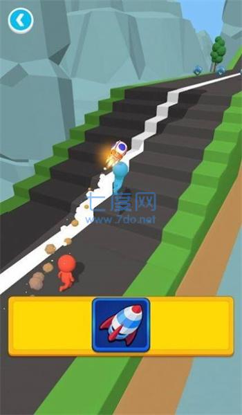收集火箭道具飞行跑酷,越多越快,超越其他游戏者。