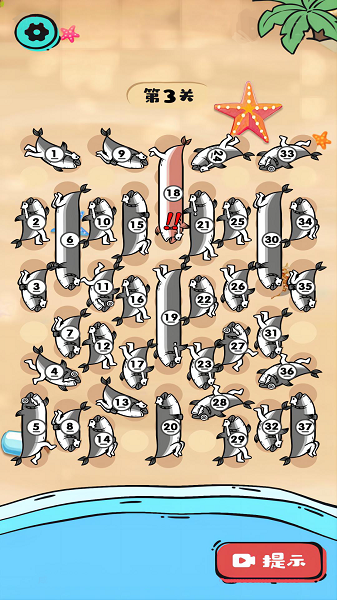 各种咸鱼摆放的非常不规整,在手游里游戏者要找到合理的移动方法,才能够将他们全部翻动。