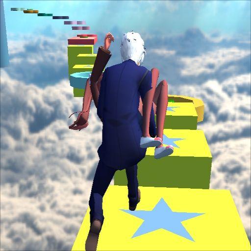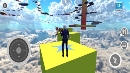 遇见分离的方块道路后,右手点击跳跃按键,让角色跳着向前行进。