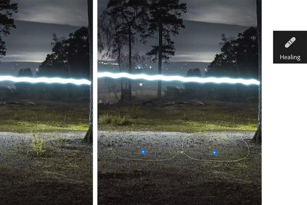 新的 Content-Aware Remove 可让您在几秒钟内擦除任何内容。选择一个对象或瑕疵,Lightroom 会自动将其混合。