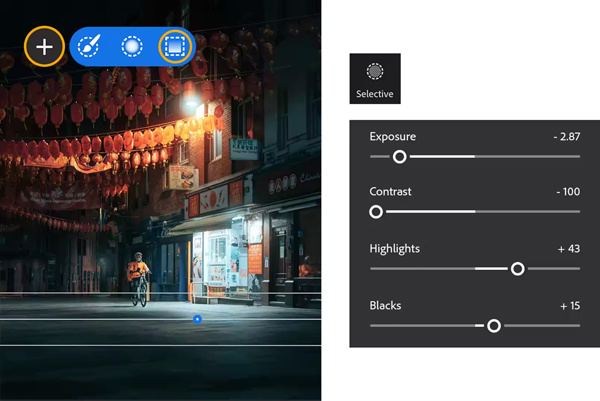 使用选择性编辑和径向渐变来吸引人们对独特效果的注意。使用曝光和高光突出细节并使其发光。