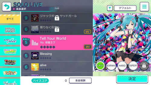 在主页面中,可以去往不同的场景。目前一共有11个默认场景,包括:音乐商店(可使用音乐卡解锁歌曲)、宫益坂女子学园、神山高校、全向十字路口、中心街、购物中心、教室的世界、舞台的世界、小巷的世界、仙境的世界、没有任何人的世界。
