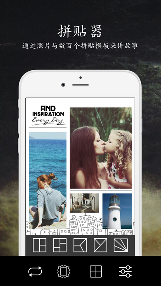 4、内置可爱的贴纸、创新的滤镜、mitume支持、自动排版支持和文本添加支持。