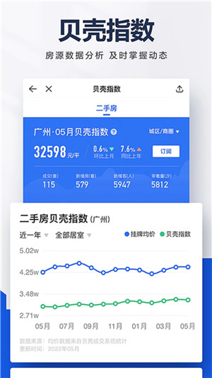 1、贝壳是一款集二手房、新房、租房,买房卖房查房价找房的专业房产APP