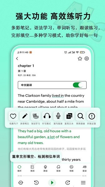 5、您还可以对整个文本进行口语评估并选择听力填充,可用于仔细聆听名词、动词、形容词和副词。