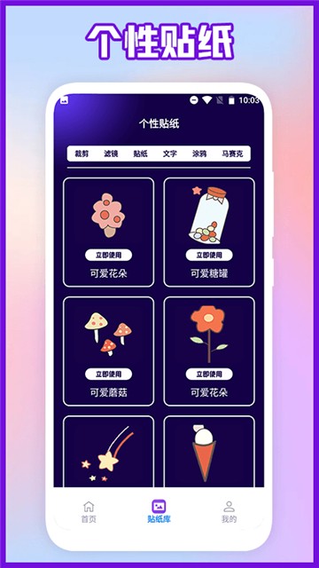 3、图片的贴纸非常多样,可以更轻松地在图片上涂鸦并开始裁剪。