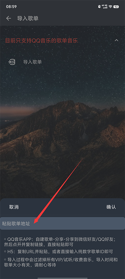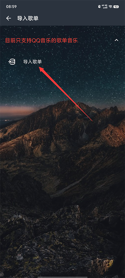 2、其次,点击“导入歌单”选项;