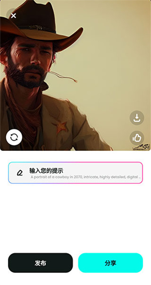 1、在你拥有了完全原创的独特艺术作品之后,欢迎将其分享给朋友们,或在社交媒体上加入最新的 #AIPainting 潮流。