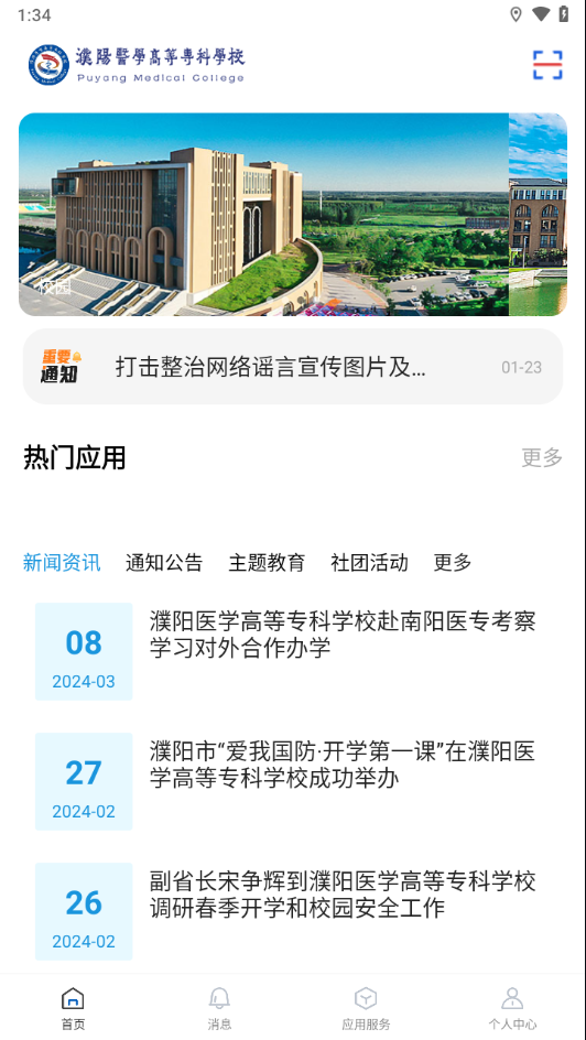 3、APP涵盖丰富的新闻资讯、生活服务和安全服务平台,还实时发布最新的校园信息。