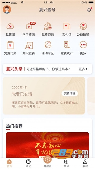 2、同时还可以在线参与最新的党建活动,及时的在手机app上面缴纳党员党费。