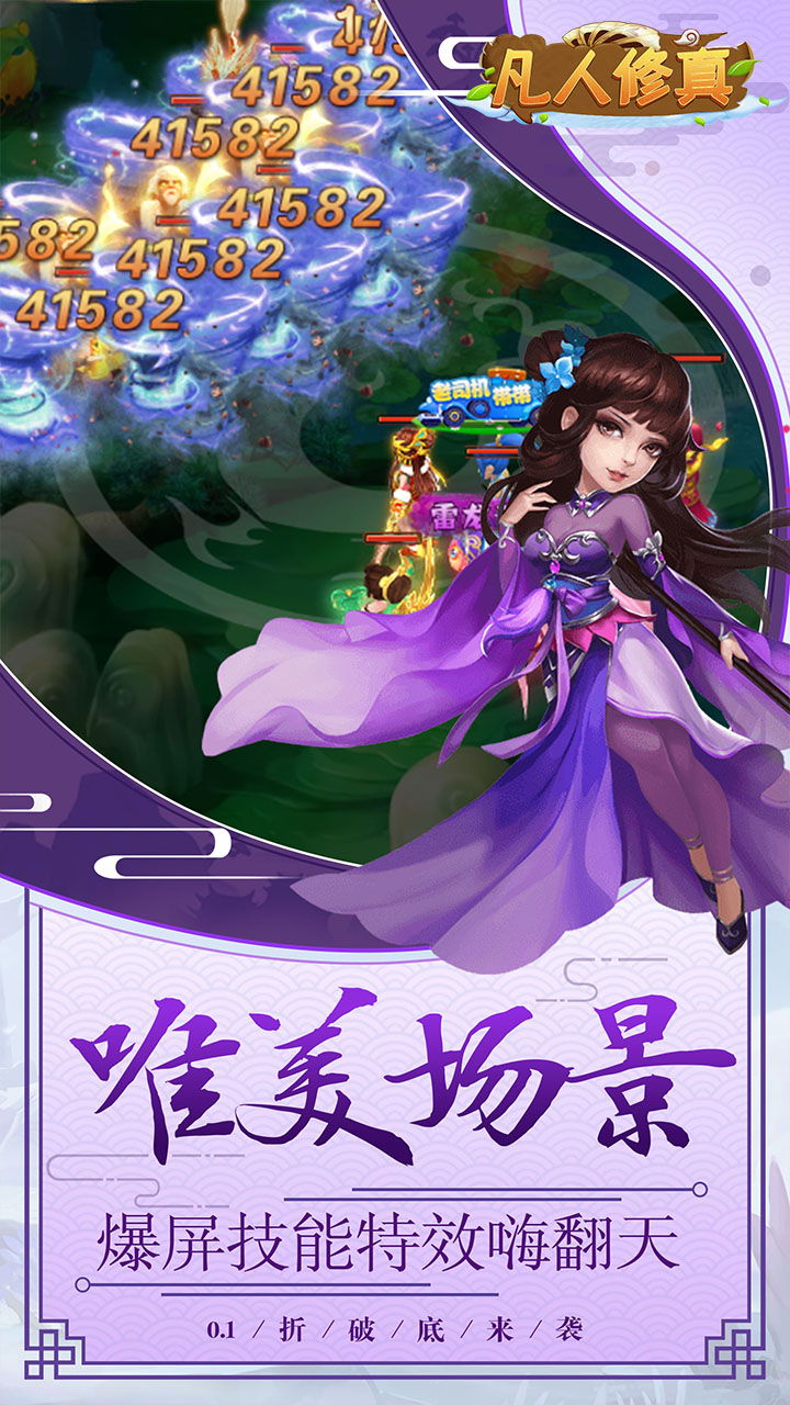 凡人修真0.1折扣:驰骋三界,仙界对决!RPG类画风偏2DQ版卡通的游戏!游戏具有高度的自由度和可玩性,玩家肆意探索丰富多彩的场景地图,为了消灭遍布各地的邪魔妖怪,只能不断提高自身的等级实力,手持一把威力无穷的神兵利器,使得自身的战斗属性迅速提升,携手更多可靠的队友,向着凶猛强大的boss发起挑战。
