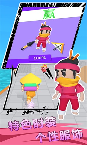 在手游中可以尝试全新的战斗玩法,既可以操作人物角色在单独的赛道上闯关,也可以选择加入忍者对战闯关。