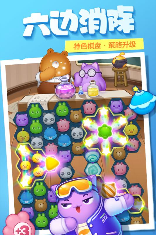 1摒弃传统式,以六边形为棋盘开展消除。