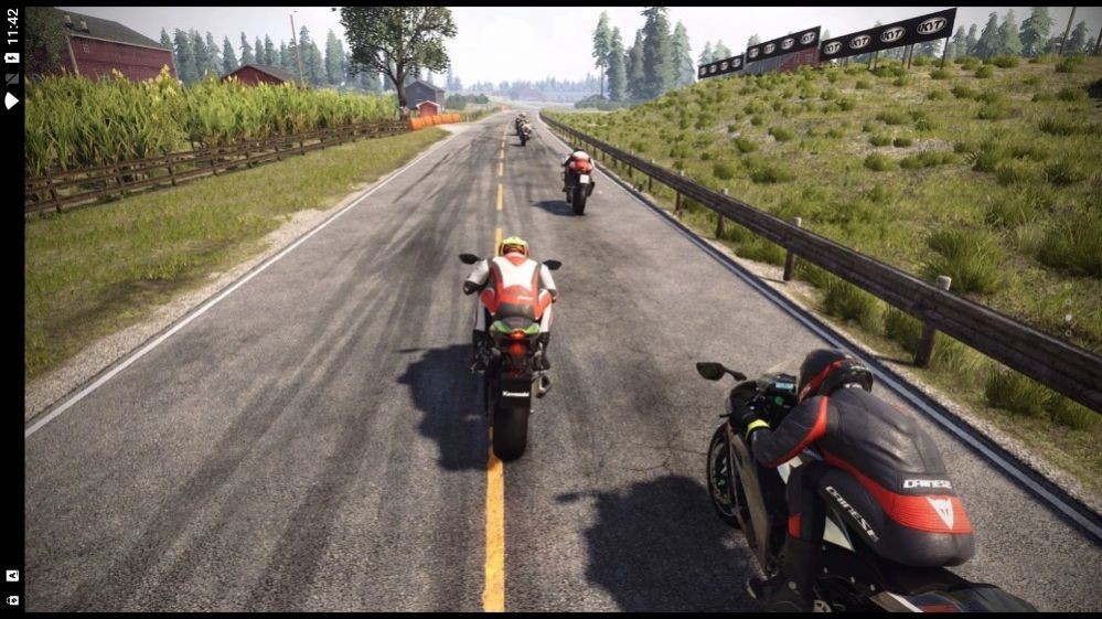 3、摩托车比赛,驾驶自己的摩托车,开启经典的暴力游戏,通过踢、打、挡、棒球棍阻碍对手的速度。