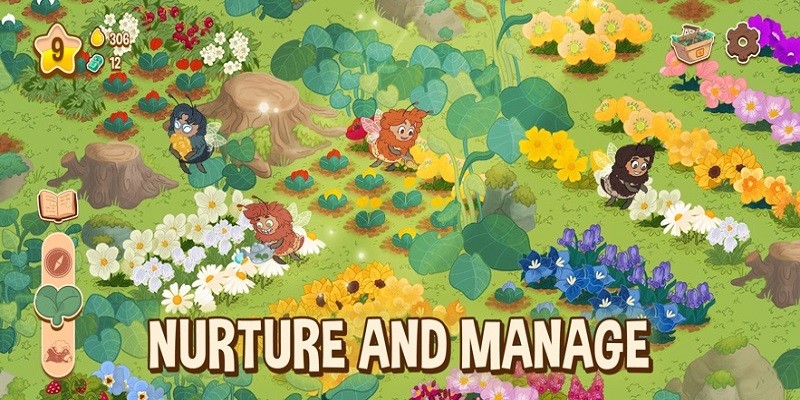种植各种花卉、灌木和树木,点亮一系列图鉴,解锁更多的花蜜种类,享受更愉快的游戏体验。